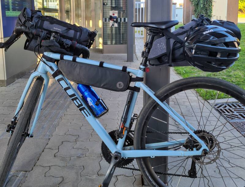 Mein Einstieg ins Bike-packing. Mit "jugendlichen" 52 Jahren und zwei weiteren "jugendlichen" Mitfahrern (55 und 65 Jahre) haben wir uns Ende April entschlossen, ein Sonnenfenster auszunutzen und uns mehrere Tage lang mit den Öffis und dem Rad Richtung Süden zu bewegen. Natürlich ganz ohne Strom, das Alter für E-Bikes haben wir drei noch lange nicht erreicht (sagt die Eigenwahrnehmung - auch Hybris genannt).